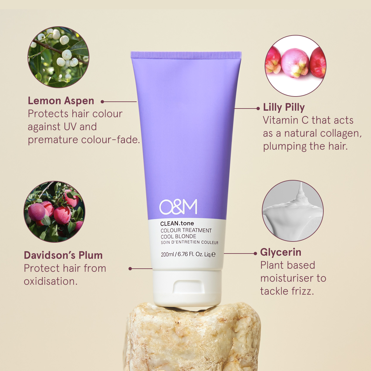 • Davidson Plum – A natural plant extract from the Australian rainforest that helps protect hair from oxidisation